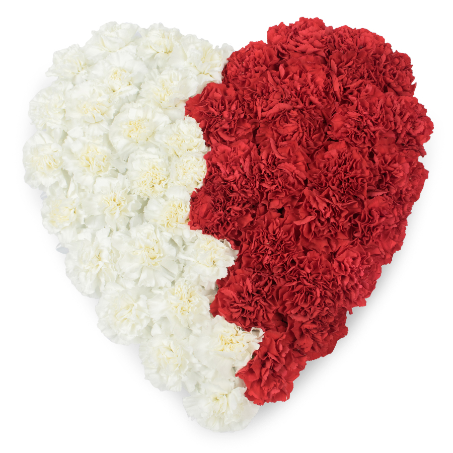 Embrace the grace and beauty of our heart-shaped mixed carnations arrangement. Combining elegant white and passionate red carnations, this bouquet is a unique way to express your heartfelt sympathy.